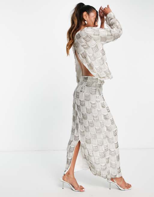 ASOS EDITION - Gonna midi decorata con perle e perline drappeggiate con motivo a quadri