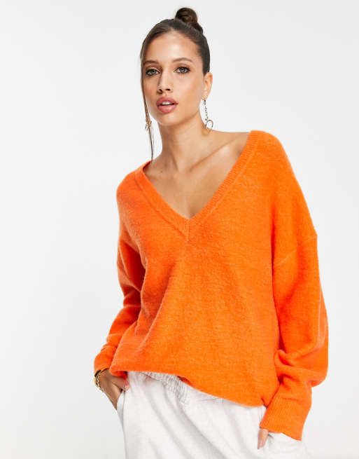 ASOS Edition - Maglione con scollo a V arancione acceso
