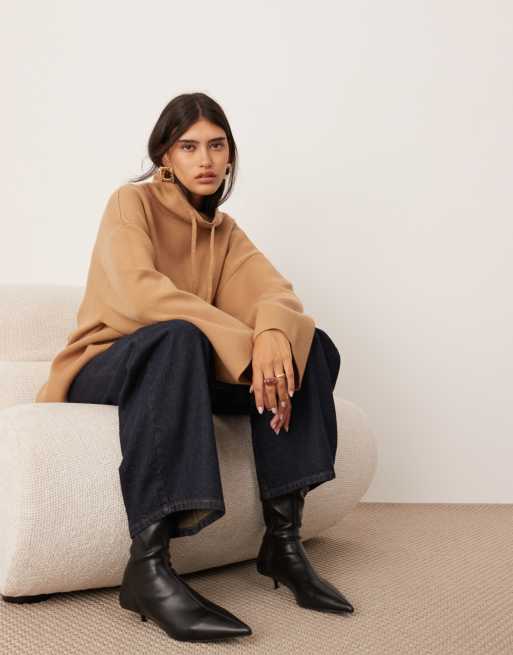 ASOS EDITION - Maglione premium in maglia compatta color cammello con collo alto
