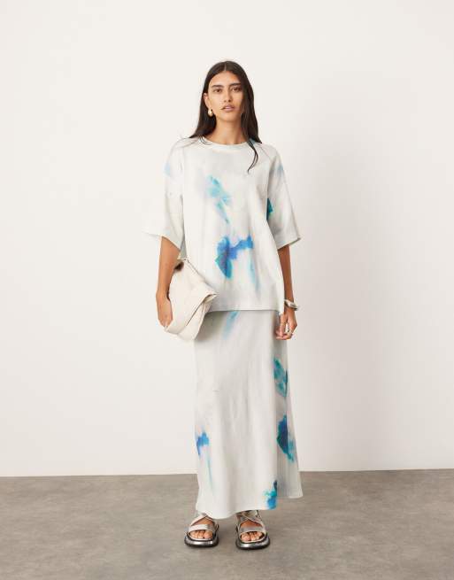 ASOS Edition Premium - Coordinato con t-shirt oversize e gonna lunga a colonna in jersey pesante con stampa sfumata