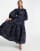 ASOS Edition - Vestito grembiule lungo a balze in lamé blu navy jacquard