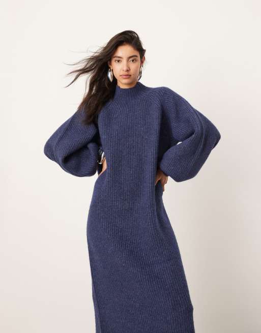 ASOS EDITION - Vestito lungo accollato in maglia spessa color blu navy