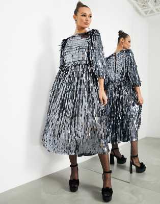 ASOS Edition - Vestito lungo oversize blu navy con paillettes a goccia