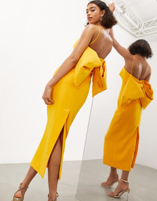 ASOS Edition - Vestito midi a colonna in crêpe giallo calendula con fiocco