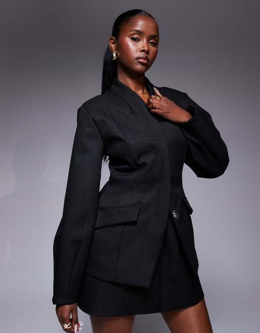 ASOS LUXE - Blazer sartoriale sagomato nero in coordinato