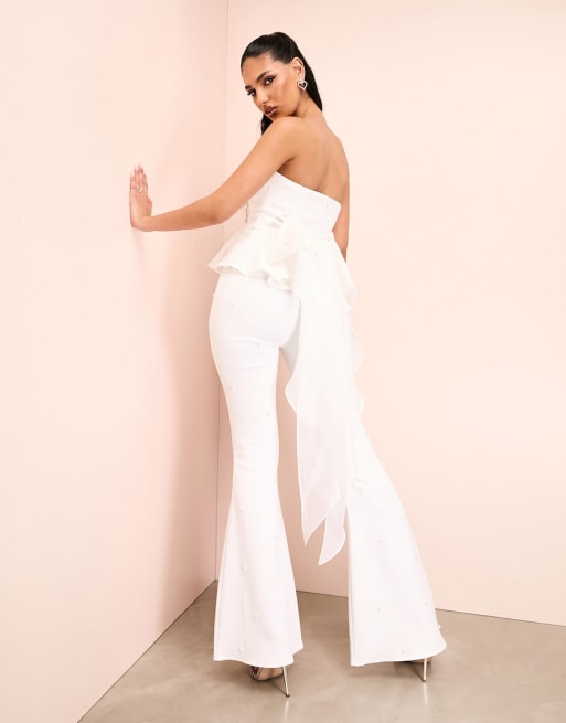ASOS Luxe - Coordinato con pantaloni a zampa e top peplo decorato con perle