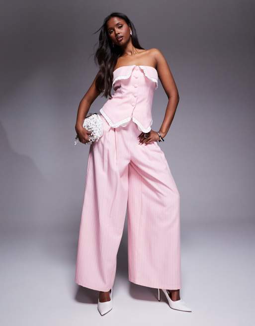 ASOS LUXE - Coordinato sartoriale rosa a righe con gilet a fascia e pantaloni
