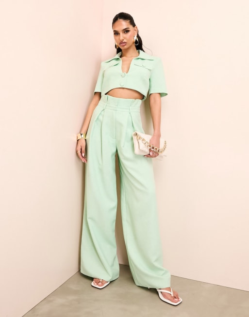 ASOS Luxe - Coordinato verde con camicia sartoriale corta e pantaloni a vita alta