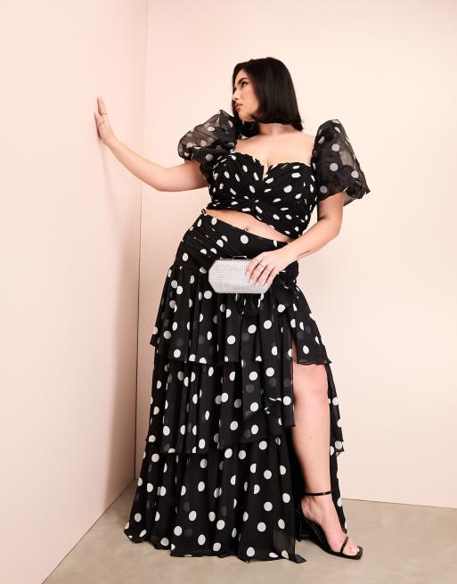 ASOS LUXE Curve - Gonna lunga in organza a balze con volant e motivo a pois monocromatico in coordinato