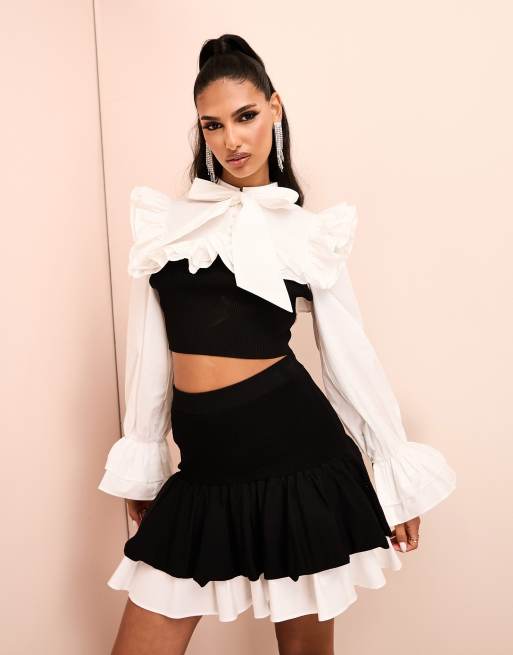 ASOS LUXE - Pussy - Top in maglia a righe in misto popeline con fiocco