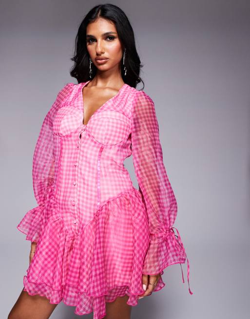 ASOS LUXE - Vestito corto in organza rosa con stampa a quadretti e coppe