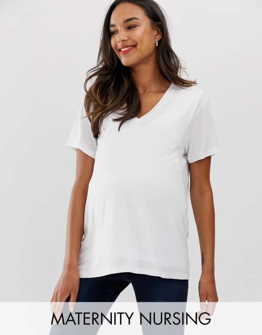 ASOS DESIGN Maternity - T-shirt per allattamento bianca con scollo a V