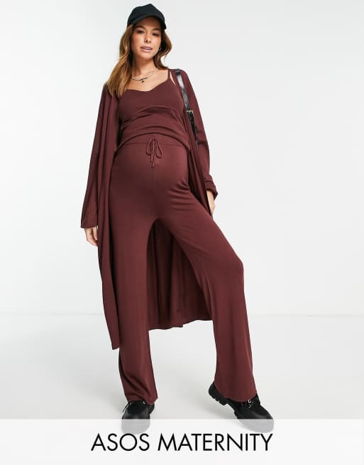 ASOS DESIGN Maternity - Cardigan lungo marrone in coordinato