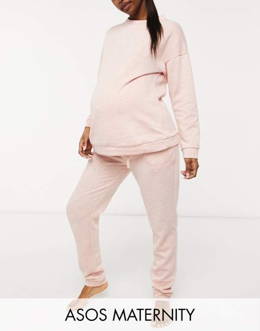 ASOS DESIGN Maternity - Completo basic rosa con felpa e joggers