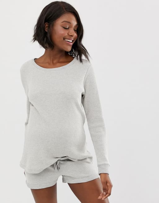 ASOS DESIGN Maternity Lounge - Coordinato felpa e pantaloncini a nido d'ape