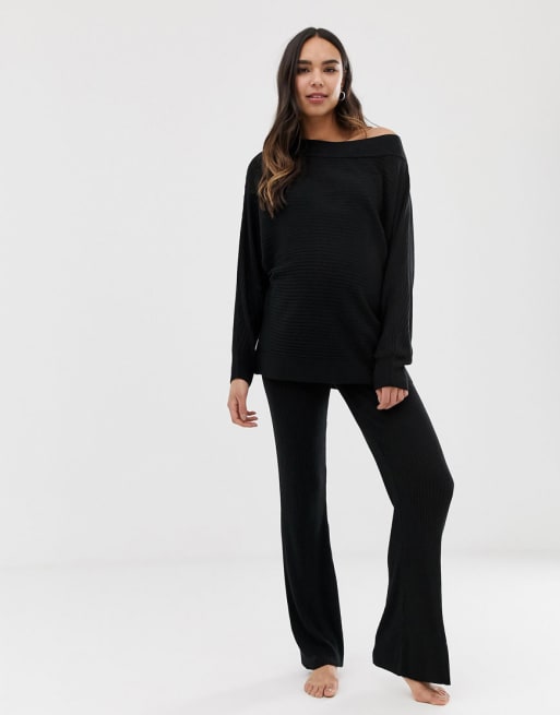 ASOS DESIGN Maternity Lounge - Felpa con spalle scoperte a coste e pantaloni