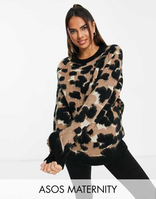 ASOS DESIGN Maternity - Maglione in filato morbido con stampa animalier