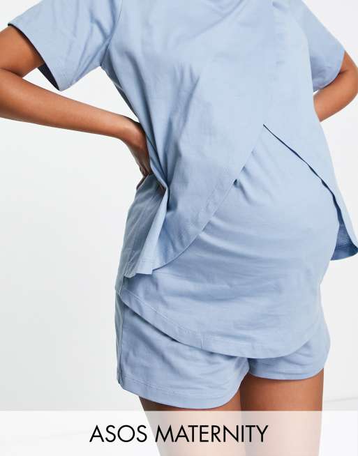 ASOS DESIGN Maternity - Mix and Match - Pantaloncini del pigiama in cotone blu - BLUE