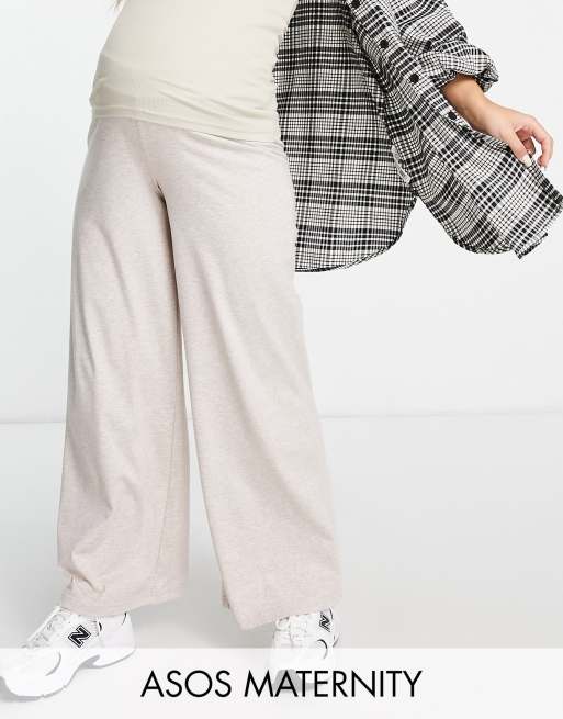 ASOS DESIGN Maternity - Pantaloni a fondo ampio in jersey color avena