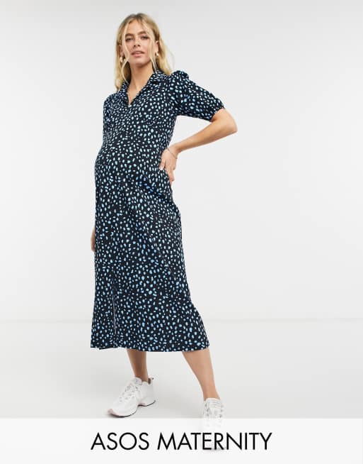 ASOS DESIGN Maternity - Ultimate - Vestito da giorno nero con pois blu e colletto