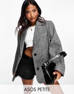 ASOS DESIGN Petite - Blazer serafino oversize in twill nero monocromatico