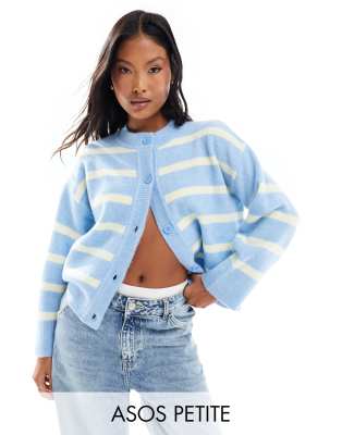 ASOS DESIGN Petite - Cardigan squadrato in maglia a righe con bottoni sul davanti
