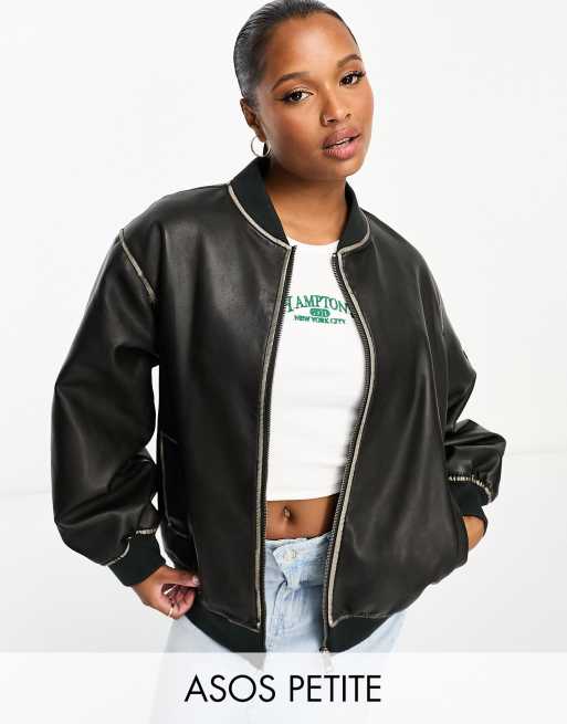 ASOS DESIGN Petite - Giacca bomber nera in pelle sintetica slavata