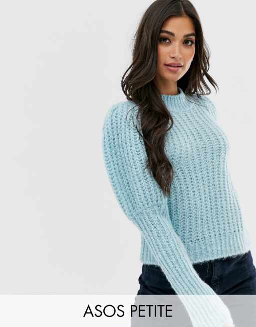 ASOS DESIGN Petite - Maglione pesante a coste in filato pregiato con maniche a palloncino