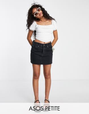 ASOS DESIGN Petite - Original - Minigonna di jeans a vita media nero slavato