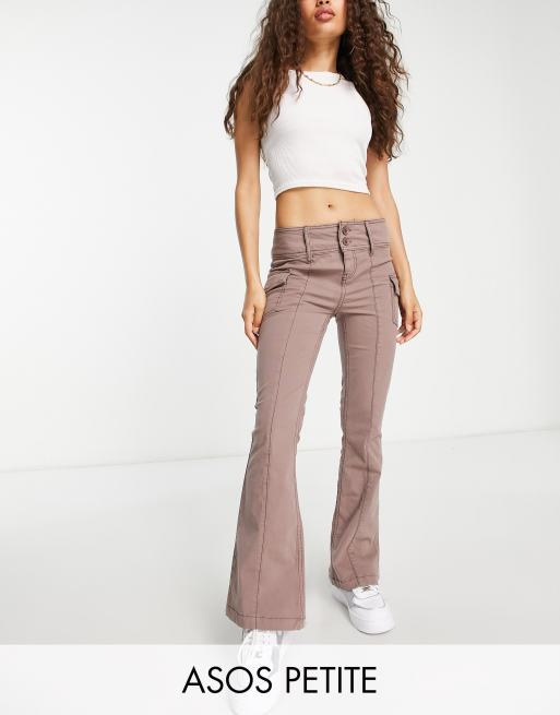 ASOS DESIGN Petite - Pantaloni a zampa color visone con tasche cargo