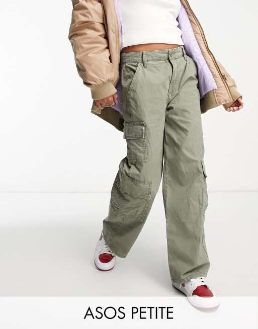 ASOS DESIGN Petite - Pantaloni cargo oversize multitasche kaki
