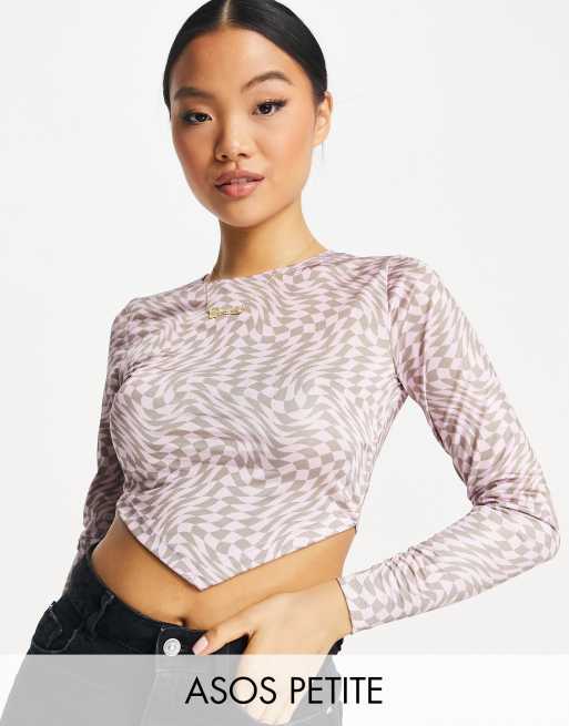 ASOS DESIGN Petite - Top con orlo a punta rosa a quadri