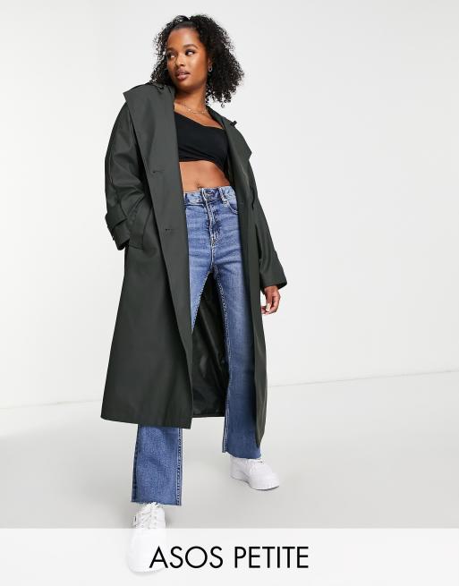 ASOS DESIGN Petite - Trench oversize gommato verde oliva scuro