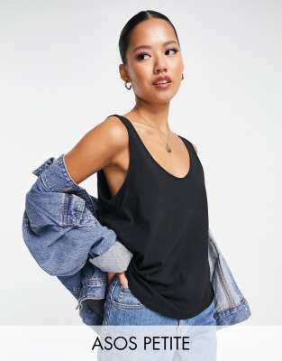 ASOS DESIGN Petite - Ultimate - Canotta con scollo rotondo nera in misto cotone - BLACK