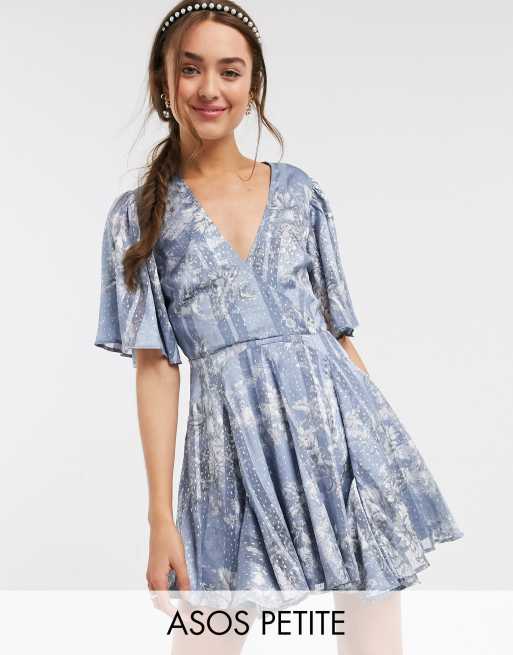 ASOS DESIGN Petite - Vestito corto a godet in jacquard con stampa florale tenue laminata