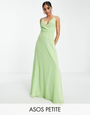 ASOS DESIGN Petite - Vestito lungo avvolgente allacciato sul retro con spalline sottili