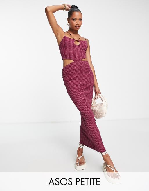 ASOS DESIGN Petite - Vestito lungo rosa mélange con design a fascette e gonna a vita bassa