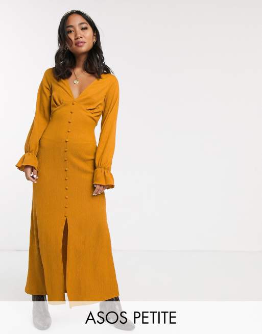 ASOS DESIGN Petite - Vestito lungo testurizzato a maniche lunghe con bottoni