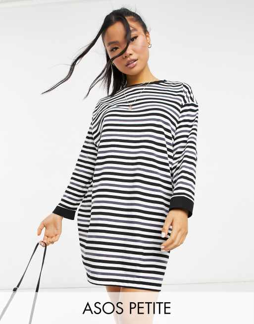 ASOS DESIGN Petite - Vestito T-shirt oversize a maniche lunghe a righe nero antracite e bianco