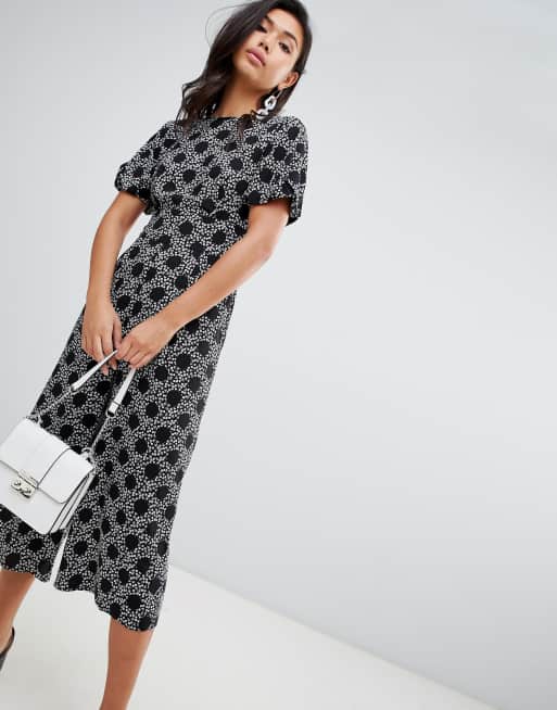 ASOS DESIGN - Tuta jumpsuit da giorno con maniche a palloncino e motivo misto a fiori e pois
