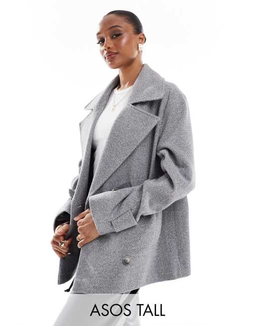 ASOS DESIGN Tall - Cappotto doppiopetto elegante grigio effetto lana