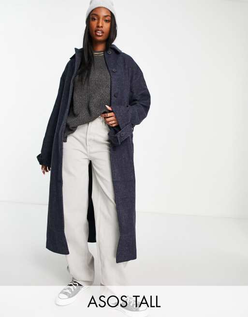 ASOS DESIGN Tall - Cappotto lungo boyfriend oversize in twill blu navy