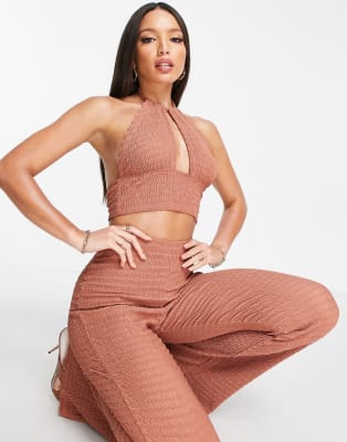 ASOS DESIGN Tall - Coordinato da mare testurizzato con top e pantaloni color visone