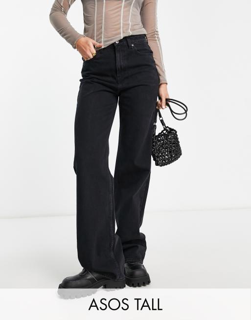 ASOS DESIGN Tall - Dad jeans nero slavato con fondo ampio