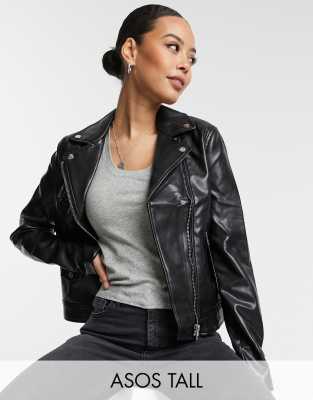 ASOS DESIGN Tall - Giacca biker in pelle sintetica nera
