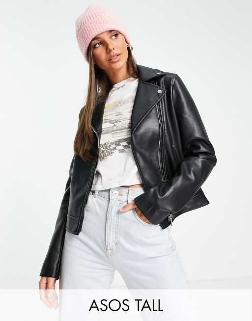 ASOS DESIGN Tall - Giacca biker in pelle sintetica nera