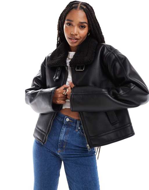 ASOS DESIGN Tall - Giacca stile aviatore nera con scollo a imbuto