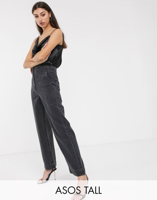 ASOS DESIGN Tall - Jeans cropped lavaggio nero con fondo ampio