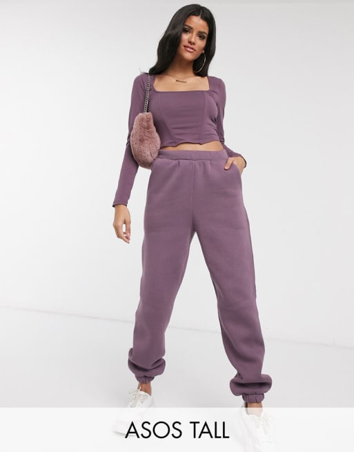 ASOS DESIGN Tall - Joggers oversize e corsetto a maniche lunghe viola in coordinato