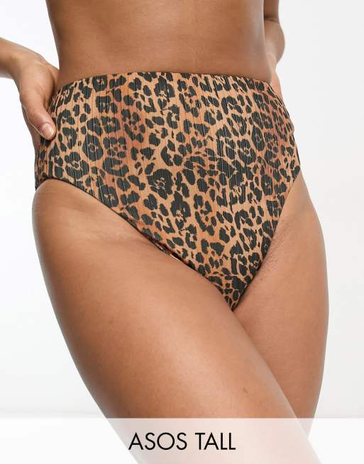 ASOS DESIGN Tall - Mix and Match - Slip bikini sgambati a vita alta a coste con stampa leopardata
